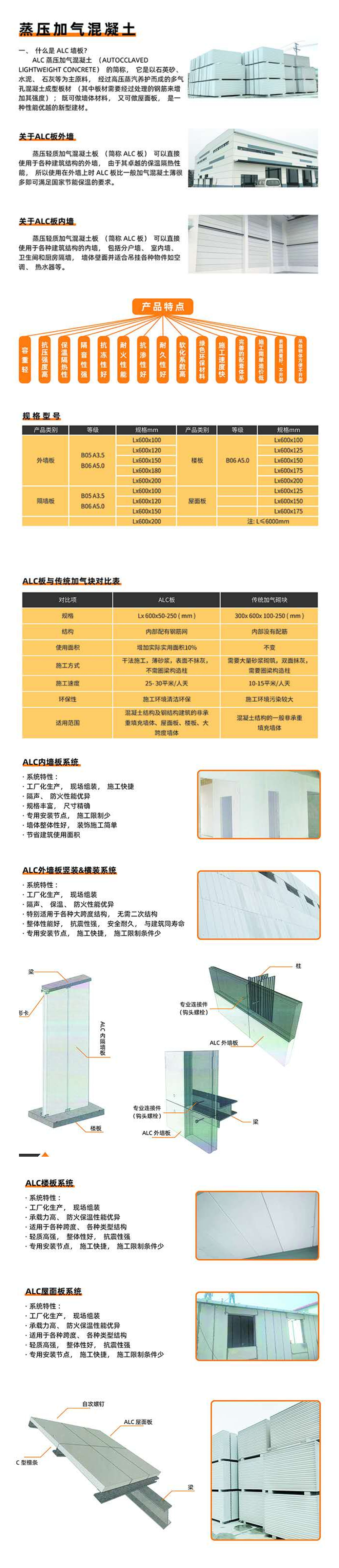 - 蒸壓加氣混凝土板,ALC墻板,AAC砌塊,ALC隔墻板-山東宏力新型建筑材料有限公司生產(chǎn)的ALC 墻板擁有優(yōu)良的技術(shù)性能,深受廣大客戶的喜愛,宏力建材生產(chǎn)的ALC墻板不僅節(jié)能保溫,而且輕質(zhì)抗震,其ALC墻板、ALC隔墻板、蒸壓加氣混凝土板的導(dǎo)熱系數(shù)為 0.13-0.19,蒸壓加氣混凝土板,ALC墻板,AAC砌塊,ALC隔墻板-山東宏力新型建筑材料有限公司所生產(chǎn)的ALC墻板其 150mm 厚度材料的保溫效果可以達(dá)到普通 370mm 厚磚墻。所以說選擇山東宏力新型建筑材料有限公司是您不二選擇,所研究的ALC墻板是一種單一材料就能達(dá)到建筑節(jié)能 75%以上的新型建材;其保溫、隔熱性是玻璃的六倍、粘土的三倍、普通混凝土的十倍,是目前適用于建筑節(jié)能的自保溫材料;蒸壓加氣混凝土板,ALC墻板,AAC砌塊,ALC隔墻板-山東宏力新型建筑材料有限公司期待您的來電,關(guān)注我們的官方網(wǎng)站,了解更多關(guān)于蒸壓加氣混凝土板,ALC墻板,AAC砌塊,ALC隔墻板的詳細(xì)內(nèi)容。