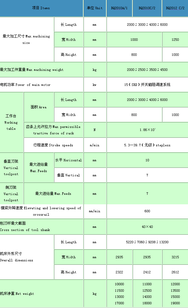 本刨床適應于粗、精加工各種水平面、傾斜面、T型槽、各種平面組合的導軌面及齒條。具有刨、磨的速度性能,可配置磨頭完成多種加工。工作臺與床身導軌結合面均有耐磨措施,使用壽命長。機床性能好、節(jié)省能源、重量輕。 刨床主傳動為開關磁阻調(diào)速系統(tǒng)。