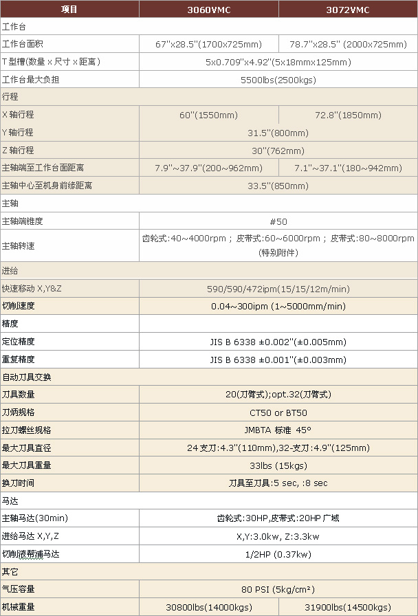 FALCON -3060 / 3072VMC 高率立式綜合加工機